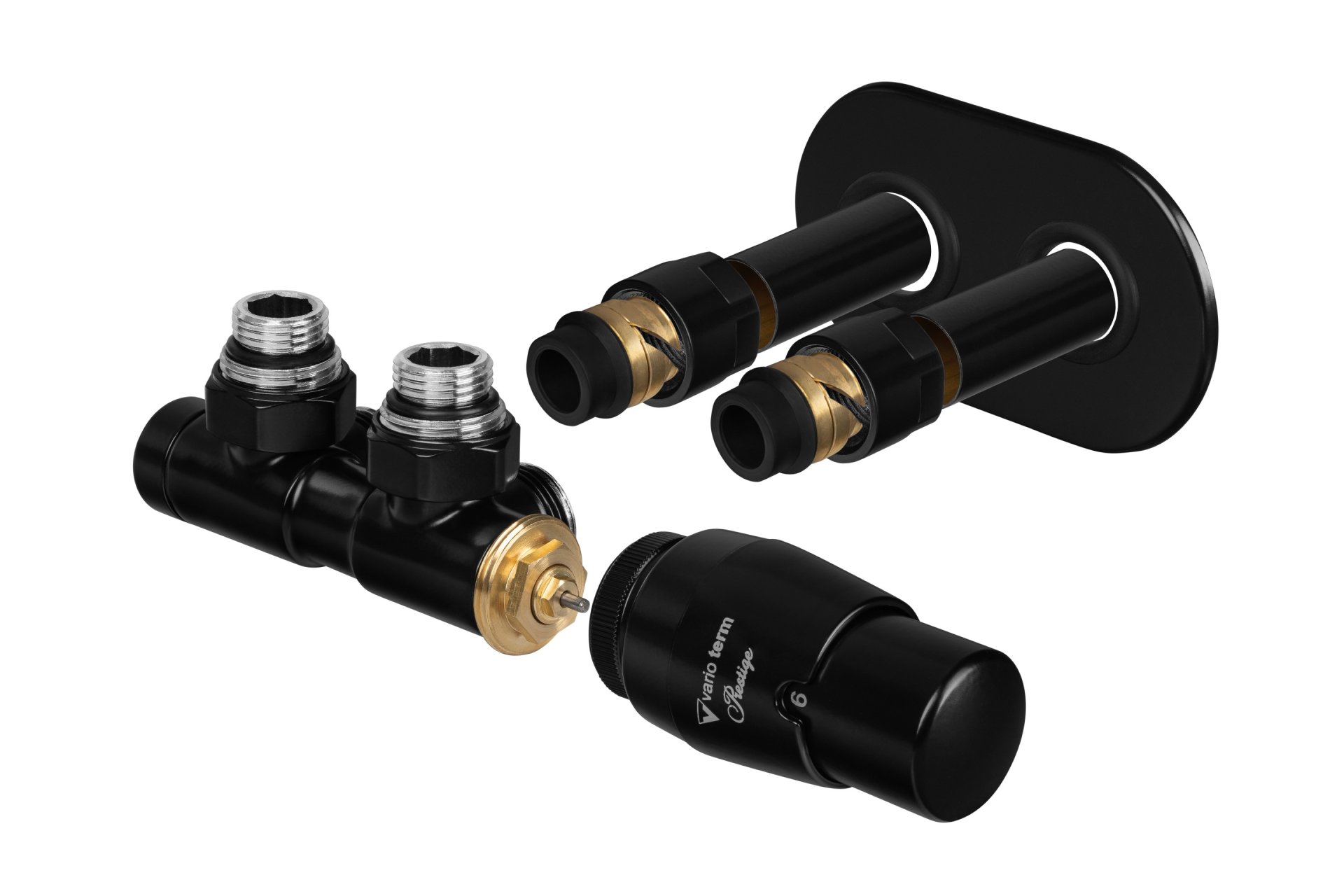 GZ ½” / GZ ¾” x GZ ¾”. Głowica termostatyczna: PRESTIGE / TUCAN. Złączki: PEX (16x2) / Cu (15x1). |