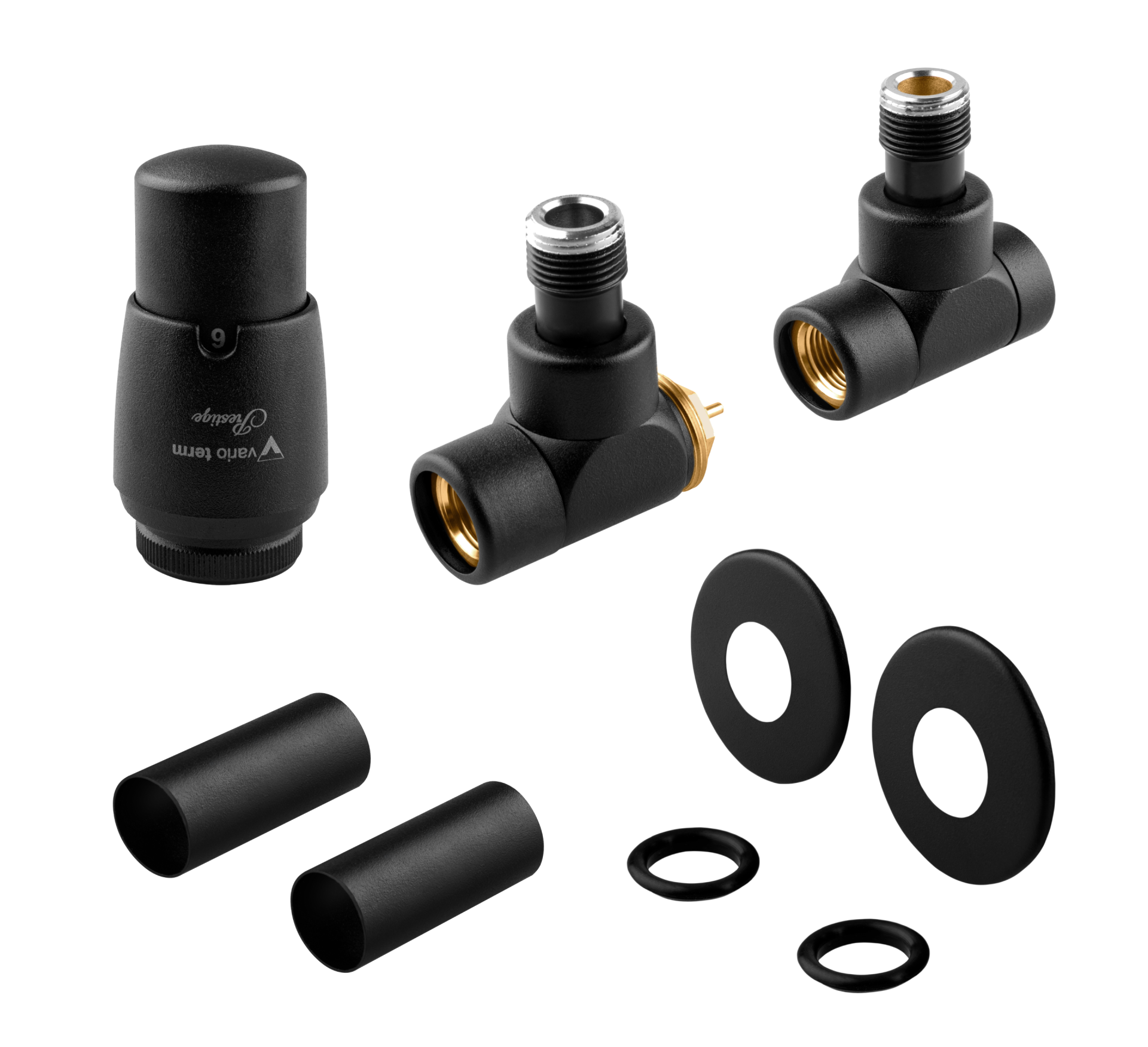 - Złączki na PEX (16x2) lub Cu (15x1) stanowią integralną część zaworów.